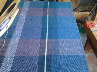 Själv håller jag på att solva ett randigt bomullstyg i 16/2 som jag ska väva här hemma. Det ska bli en långskjorta eller tunika.