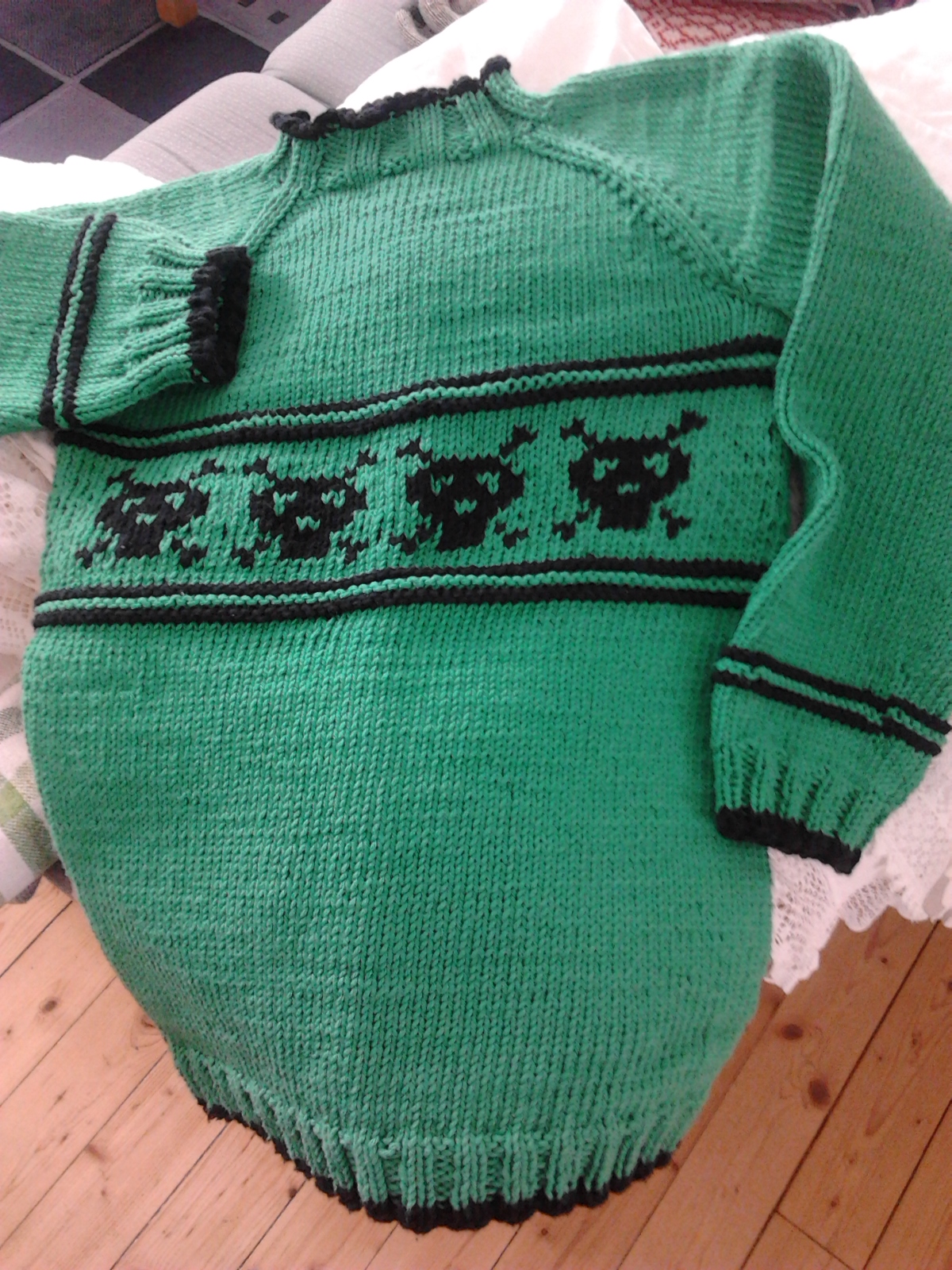 Själv höll jag mig till stickning. (Är ju lite känslig för ull...)Ny tröja påbörjad - ska bli med dinosaurier på...